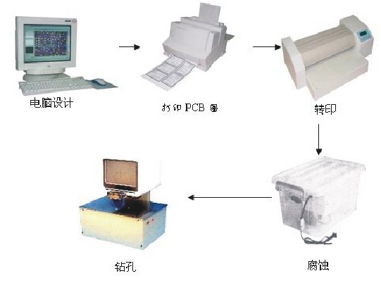 系統配置:計算機、激光打印機、轉印機、腐蝕桶、高速視頻鉆、轉印紙、合金鉆頭
