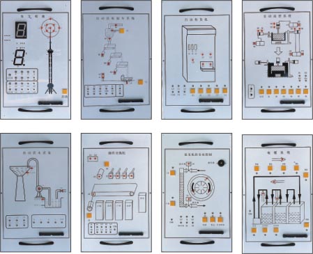 配合 PLC 可編程控制器實驗臺使用而設(shè)計的外接演示裝置。它由 LED 發(fā)光二極管、大型 LED 數(shù)碼管、直流電機、步進電機等執(zhí)行機構(gòu)用其他外圍電路模擬實際工業(yè)控制過程中的狀態(tài),它形象生動的演示了 PLC 的整個執(zhí)行過程。通過該裝置,可以鍛煉學(xué)生的動手能力,能夠形象生動的執(zhí)行機構(gòu)驗證自己編寫程序的正確性,掌握 PLC 的實際應(yīng)用,增強學(xué)生對 PLC 的學(xué)習(xí)興趣。該裝置在演示屏上位置可任意移動、互換。