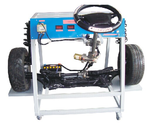 【結(jié)構(gòu)組成】 長(zhǎng)安原廠電動(dòng)電控助力式方向機(jī)、方向盤、轉(zhuǎn)角傳感器、扭矩傳感器、車速傳感器、發(fā)動(dòng)機(jī)轉(zhuǎn)速信號(hào)裝置、汽車車速裝置、診斷座、減震器、方向盤、輪胎、彩色原理面板圖、可移動(dòng)式臺(tái)架等。 【功能特點(diǎn)】 1、電壓表顯示轉(zhuǎn)向、轉(zhuǎn)速、車速等信號(hào)值;實(shí)訓(xùn)臺(tái)面板上繪有與原車線束色彩一致的彩色噴繪電路圖,并覆蓋有機(jī)玻璃保護(hù);實(shí)訓(xùn)臺(tái)面板上安裝有檢測(cè)端子,可直接在面板上檢測(cè)各傳感器、執(zhí)行器、控制單元管腳的電信號(hào),如電阻、電壓、電流、頻率信號(hào)等;刻度盤顯示轉(zhuǎn)向角度大。ㄟx裝)。 2、可進(jìn)行前輪定位檢測(cè)與調(diào)整;萬(wàn)向腳輪臺(tái)架,便于移動(dòng)教學(xué)演示原車轉(zhuǎn)向系統(tǒng)的工作過(guò)程。 3、演示電動(dòng)電控助力式系統(tǒng)的原理、作用、變化。前輪定位三要素的調(diào)整和作用。 4、演示懸掛系統(tǒng)工作情況。拆裝實(shí)操。 5、故障模擬系統(tǒng)可模擬實(shí)際運(yùn)行工況,設(shè)置多種常見(jiàn)故障。 6、底架部分采用鋼性結(jié)構(gòu)焊接,表面烤漆工藝,帶自鎖腳輪,安全可靠; 7、外觀尺寸:1500mm×1000mm×1200mm(長(zhǎng)×寬×高)