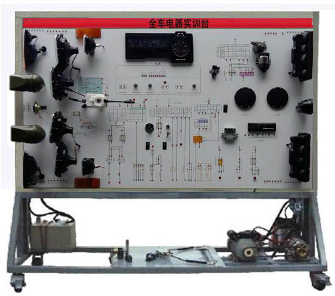 二、功能特點(diǎn) 1.真實(shí)可運(yùn)行的汽車(chē)整車(chē)電器系統(tǒng),充分展示汽車(chē)整車(chē)電器系統(tǒng)的組成結(jié)構(gòu)。 接通電源,操縱示教板上的各種電器開(kāi)關(guān)、按鈕、真實(shí)演示汽車(chē)儀表系統(tǒng)、燈光系統(tǒng)、雨刮系統(tǒng)、喇叭系統(tǒng)、發(fā)動(dòng)機(jī)電器系統(tǒng)、起動(dòng)系統(tǒng)和充電系統(tǒng)等汽車(chē)電器各系統(tǒng)的工作過(guò)程。 2.設(shè)備面板采用耐創(chuàng)擊、耐污染、防火、防潮的高級(jí)鋁塑板,表面經(jīng)特殊工藝噴涂底漆處理;面板打印有不會(huì)褪色的彩色電路圖;學(xué)員可直觀(guān)對(duì)照電路圖和實(shí)物,認(rèn)識(shí)和分析汽車(chē)整車(chē)電器各系統(tǒng)的工作原理。 3.示教板面板上安裝有檢測(cè)端子,可直接在面板上檢測(cè)汽車(chē)整車(chē)電器各系統(tǒng)電路元件的電信號(hào),如電阻、電壓、電流、頻率信號(hào)等。 4.設(shè)備面板部分采用面板部分采用1.5mm冷板沖壓成形結(jié)構(gòu),外形美觀(guān);底架部分采用鋼結(jié)構(gòu)焊接,表面采用噴涂工藝處理,帶自鎖腳輪裝置。 三、技術(shù)規(guī)格 外形尺寸(約):2080×700×1900mm(長(zhǎng)×寬×高) 動(dòng)力電源:三相四線(xiàn)(或三相五線(xiàn))380V±10% 50Hz 工作電壓:直流12V 工作溫度:-40℃~+50℃ 三相異步電動(dòng)機(jī) 型 號(hào):YT 100L1-4 電壓:AC 220V/380V 功率:2.2KW 轉(zhuǎn)速:1420r/min 顏色:7032 鋼管:40*40*3mm 機(jī)柜:1.5mm冷板沖壓成形,背面設(shè)置維修門(mén); 移動(dòng)腳輪:100*60mm