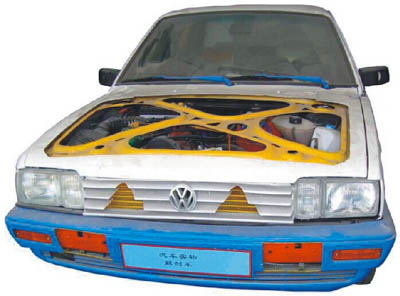 多功能解剖車選用桑塔納2000為基礎(chǔ),可容易地看見發(fā)動機(jī)艙、車身側(cè)圍的構(gòu)造結(jié)構(gòu)、鋼板的厚度及獨(dú)立懸掛的結(jié)構(gòu),甚至車輪的輪轂及輪胎的橫截面。此外,車內(nèi)方向盤、排擋桿、手剎、安全帶固定裝置及安全帶卷等平時都被包裹嚴(yán)實的部件也被特別地一剖為二,內(nèi)部工藝精度、構(gòu)造清晰呈現(xiàn),能夠展示汽車各總成裝置以及各附件位置。