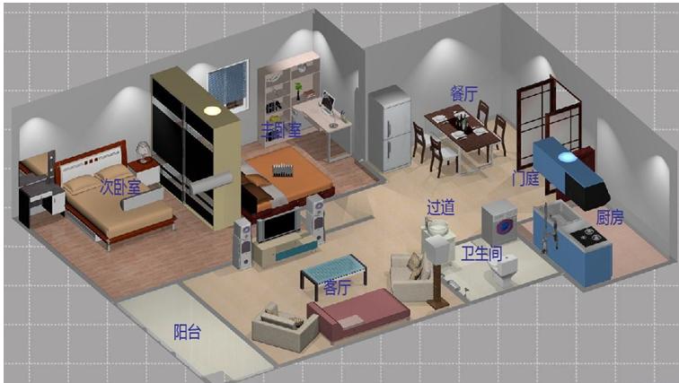 智能家居產品非常靈活,使用場所、家居戶型各不相同,用戶需求靈活多變,本智能電子產品系統(tǒng)工程實施項目的基本配置為一室一廳戶型,配置的設備可根據要求更改。